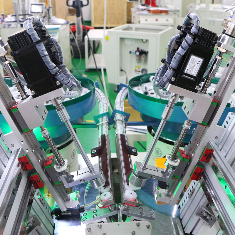 - 產(chǎn)品簡(jiǎn)介: 加油泵是一種小型加油產(chǎn)品,應(yīng)用廣泛。一般加油泵的泵體外部設(shè)有運(yùn)輸帽,(安全閥),由人工完成比較費(fèi)時(shí)、費(fèi)力,生產(chǎn)效率比較低,加工有一定的難度,并且工作時(shí)不太穩(wěn)定,而且還會(huì)出現(xiàn)旋緊力不均等問(wèn)題。為此廠家會(huì)考慮到自動(dòng)生產(chǎn)組裝機(jī)器完成此類操作。 飛速自動(dòng)化廠家按照客戶要求根據(jù)產(chǎn)品進(jìn)行設(shè)計(jì)一臺(tái)加油泵全自動(dòng)組裝螺母螺帽機(jī),能夠替代人工放置運(yùn)輸帽緊固,可以達(dá)到提升組裝運(yùn)輸帽工作效率的自動(dòng)化上送膠蓋設(shè)備。產(chǎn)品為加油泵運(yùn)輸帽,每個(gè)產(chǎn)品需按照兩個(gè)膠蓋,設(shè)備要實(shí)現(xiàn)兩顆螺帽安裝至產(chǎn)品上,并且能夠一步到位精確度高,為此將設(shè)備設(shè)計(jì)為傾斜自動(dòng)鎖付平臺(tái),這樣比較方便產(chǎn)品安裝螺帽工序,再設(shè)備兩側(cè)設(shè)立兩臺(tái)振動(dòng)盤自動(dòng)送螺帽,然后將無(wú)序工件自動(dòng)有序定向排列整齊、準(zhǔn)確地輸送到下道工序?qū)⒛z蓋吸附至工件上進(jìn)行相同的扭力矩旋轉(zhuǎn)安裝,工作時(shí),整個(gè)安裝螺母螺帽工作過(guò)程人工只需將工業(yè)產(chǎn)品的待安裝的工件放在再設(shè)定固定的工位上,設(shè)備就能自動(dòng)完成后續(xù)的組裝螺帽過(guò)程。設(shè)備設(shè)計(jì)巧妙、結(jié)構(gòu)合理。設(shè)有自動(dòng)安裝螺帽程序,自動(dòng)輸送螺帽由振動(dòng)盤裝置供料,振動(dòng)盤能夠講螺帽自動(dòng)排列 送至安裝接口上,全自動(dòng)組裝機(jī)替代了以往需人工放置緊固件的工序部分,減少了工作強(qiáng)度,降低對(duì)人工技能的熟練程度的依賴,節(jié)約了時(shí)間,達(dá)到提升安裝螺母螺帽工作效率目的。