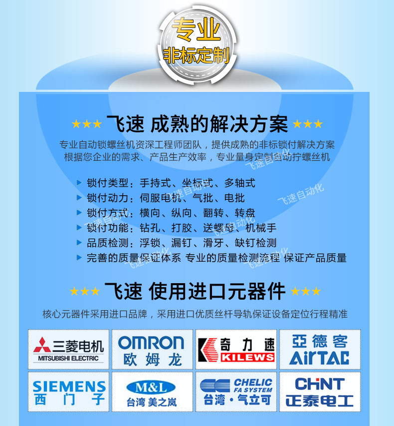 - 產品簡介: 膠件自動鎖螺絲機,該款采用多軸式,每秒可以同時鎖四個膠件,極大提高了生產效率