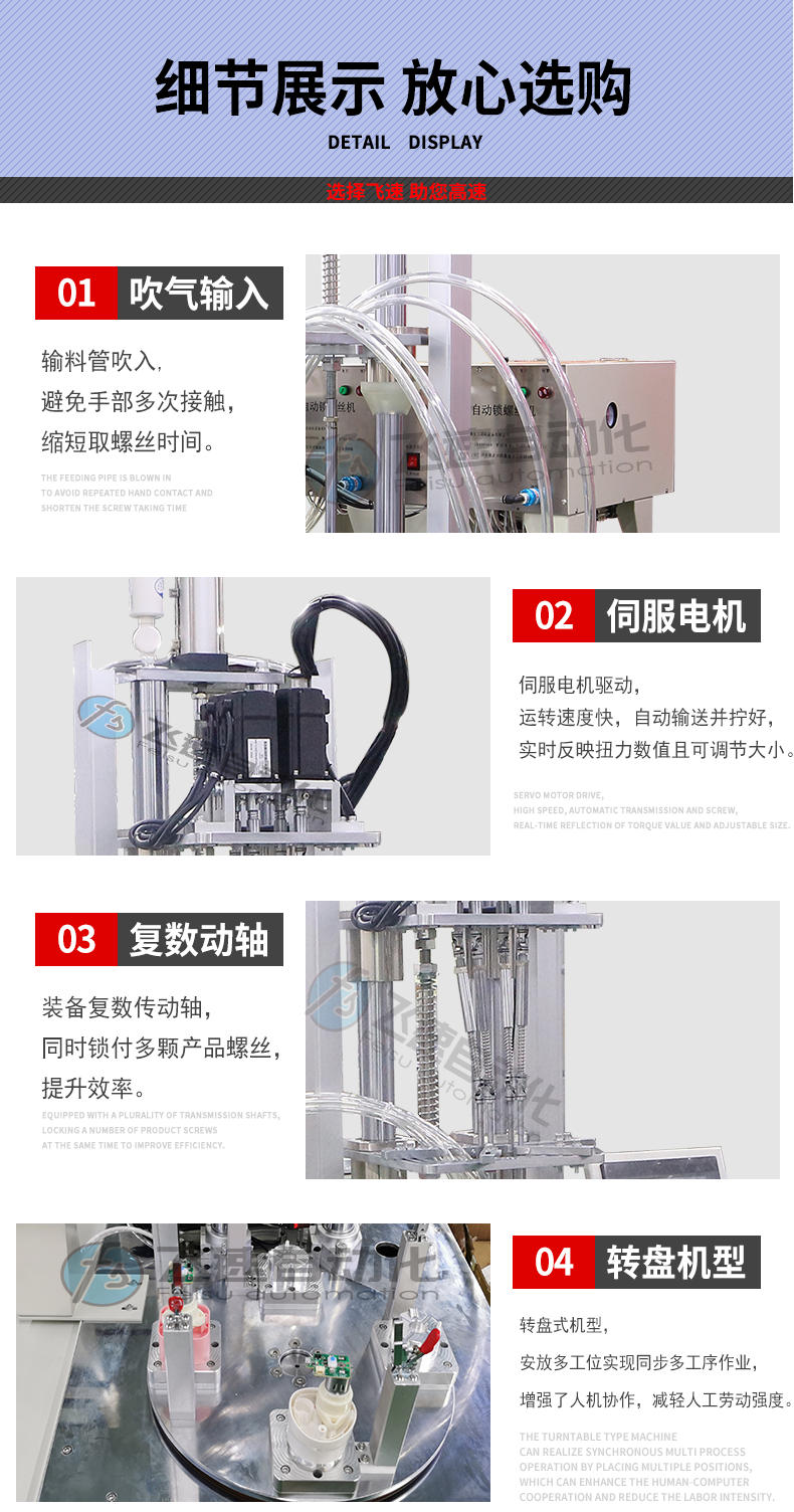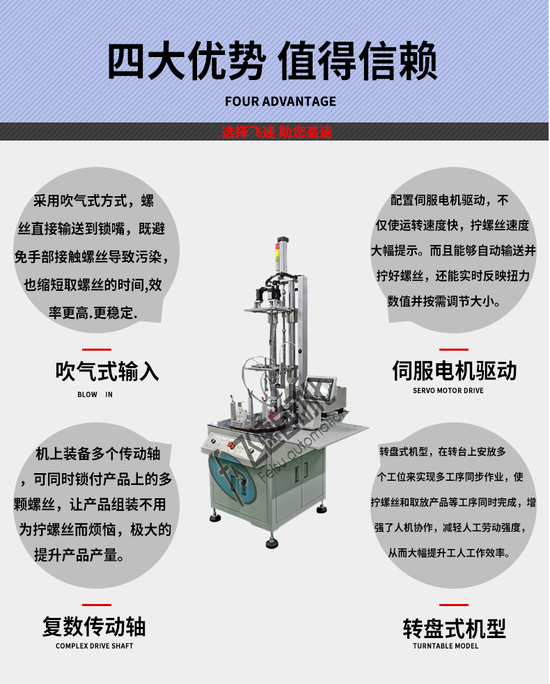 - 產品簡介: 把手作為一種機械配件,使用范圍很廣,所以生產廠家很多,但是由于金屬把手需要使用打螺絲來緊固,人工打螺絲會造成產品出現次品,所以該客戶向我司購買了這臺自動打螺絲機,解決了產品的質量問題。